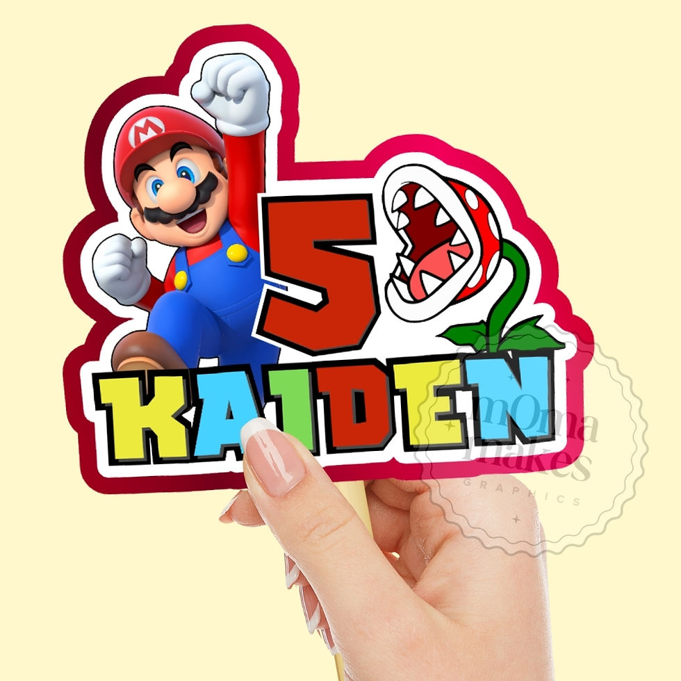 Personalised printed 6-inch wide card cake toppers backed onto pearlescent card. Complete with adhesive strip and food safe stick. Fast dispatch and tracked delivery.
